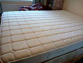 No stain Dormeo mattress. Mattress protectors, Duvet, 4 duvet covers, pillows, bed cover Divan bed, 4 drawers for storage. Base comes in 2 parts for easy removal