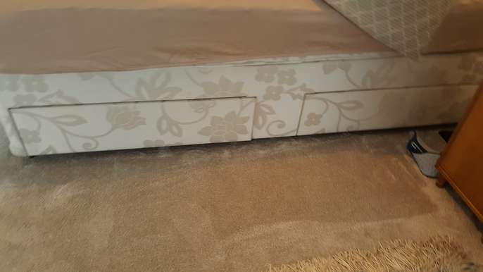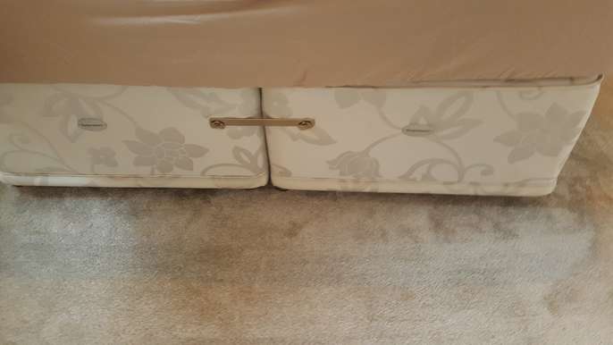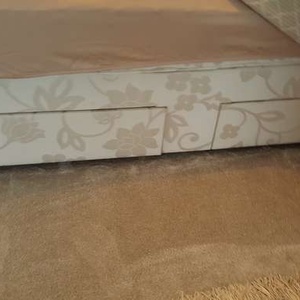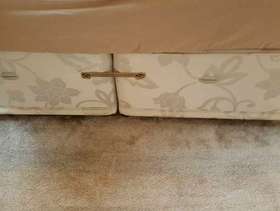 Sleepmaster kingsize divan base with four drawers for free. This does not include mattress or headboard. Good condition. One of the drawers end has been slightly pulled away but could be easily fixed. We just had drawer where not seen. This will be given to person who can collect soonest.