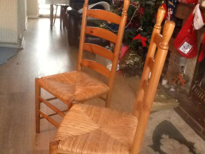 I have two kitchen chairs I no longer need if anybody needs any extra for Christmas. They are in good condition. Picture attached.