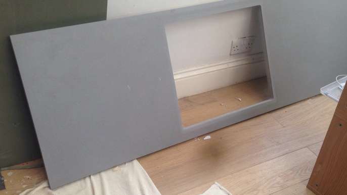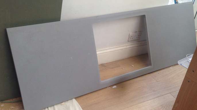 Ex display grey resin worktop with cut out for hob approx 6ft longer bought at wickes still currently sold.