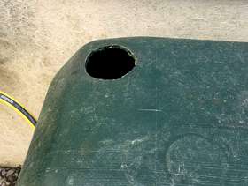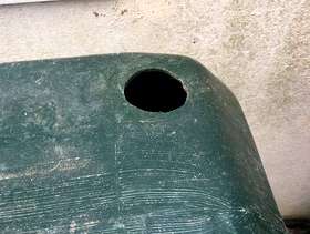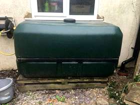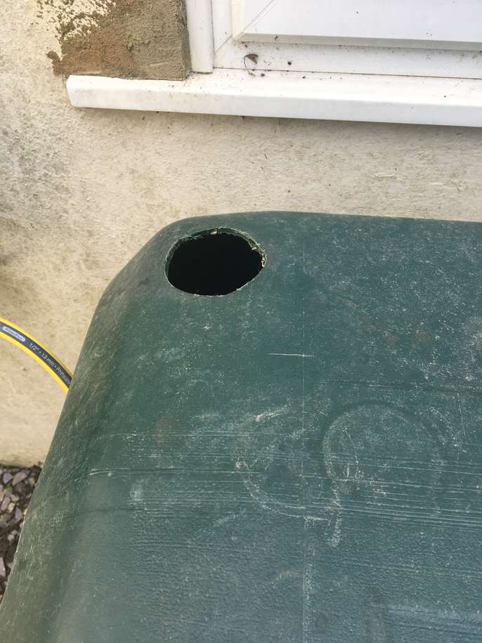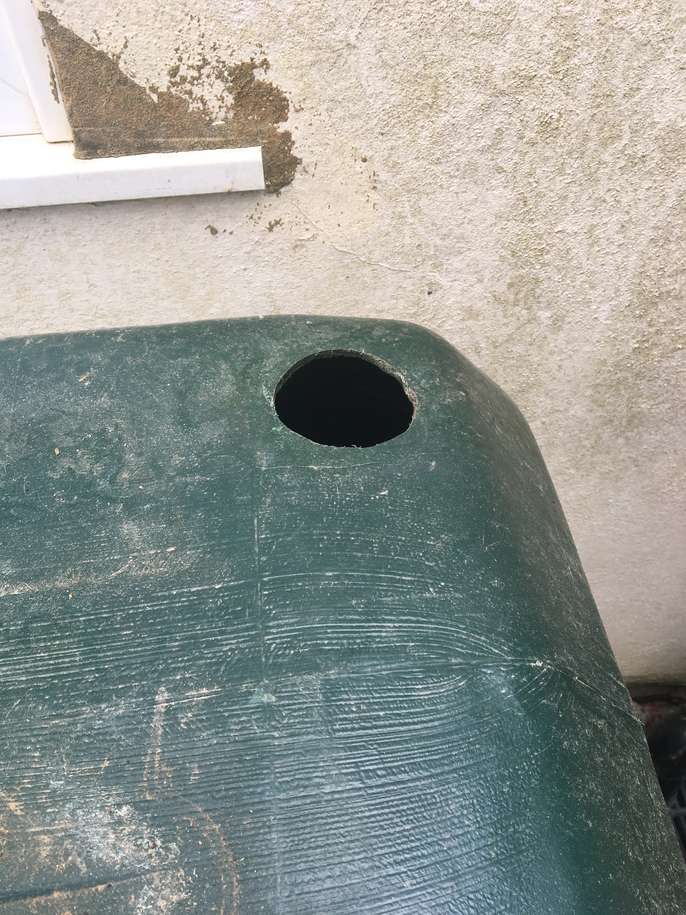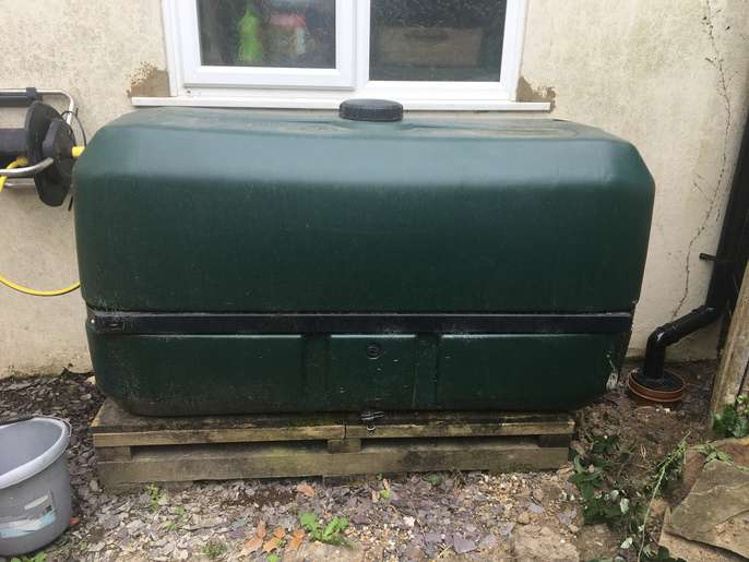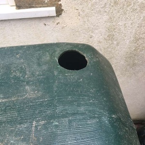Large water butt with tap at bottom. Black screw top cover & two holes made for down pipes. Need a large car or van to collect. In goid working order.