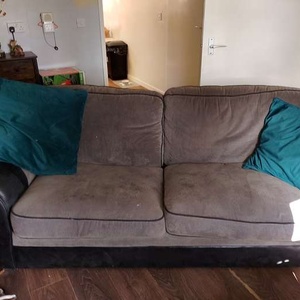 I have a large comfy clean grey fabric with faux leather arms 2 seater settee/bed that needs a new home., as new settee being delivered. Very solid and strong and in good usable order. I am a smoker so it may want freshening up. approx 77" wide. first come first served. norwich 01603 455703