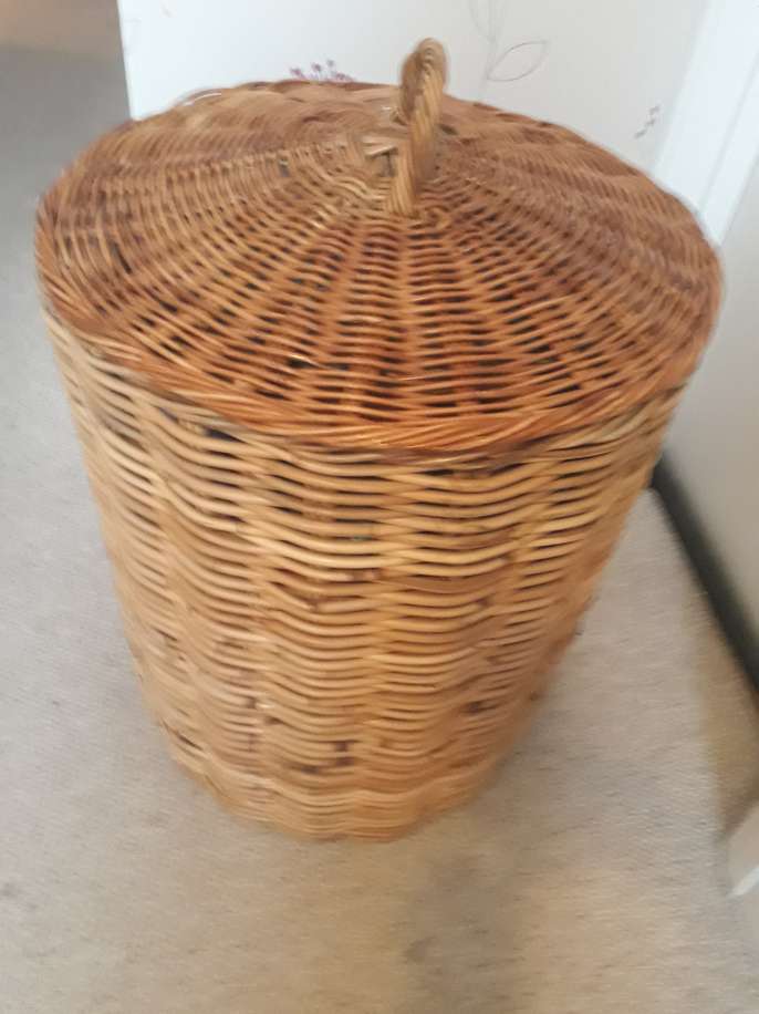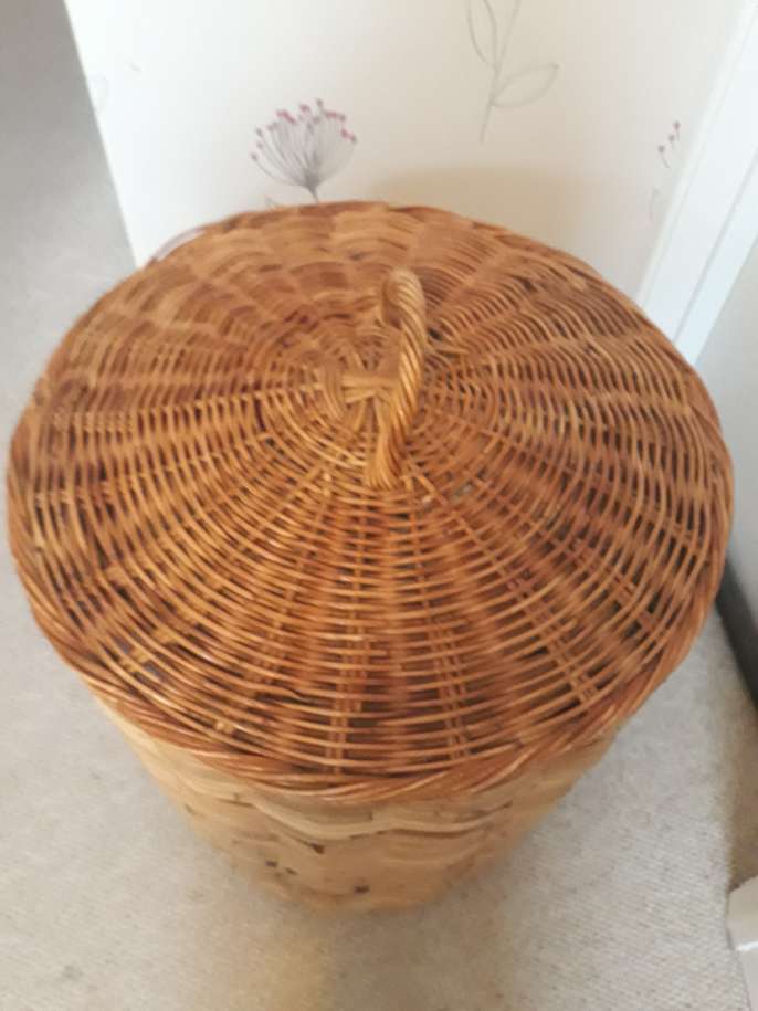 Large basket with lid. Good for storing kids toys or using as a laundry basket. 63cm tall 51cm across Good condition