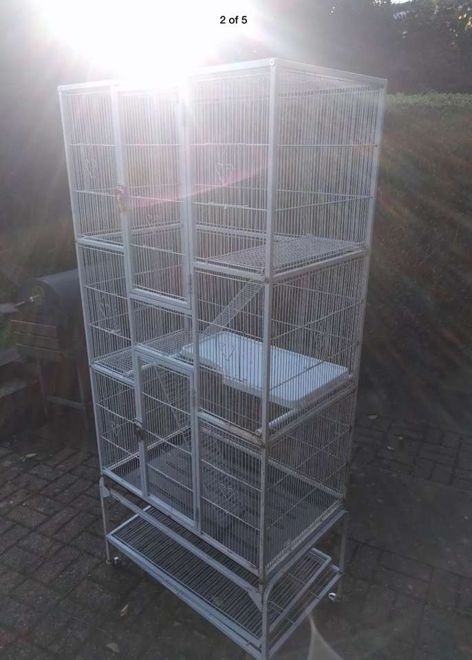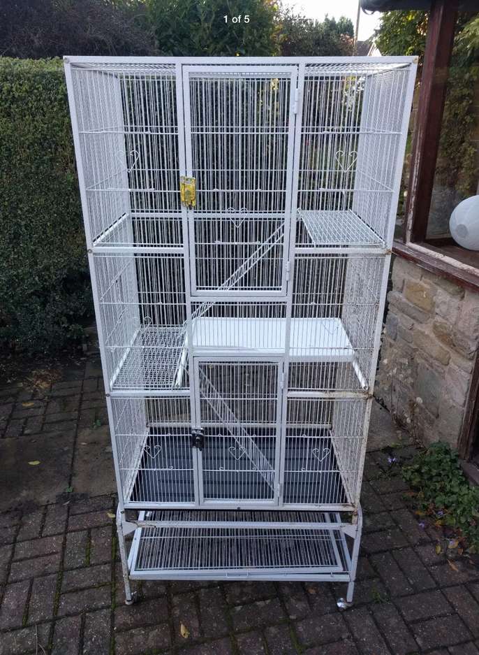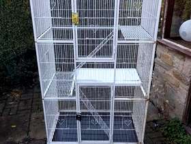 Used cage - designed for birds but used for pet rodents. Approximately 5.5 feet tall on wheeled stand. 2 x ladders. A little rusty in places - could do with a clean and possibly a respray. Too good to throw away.