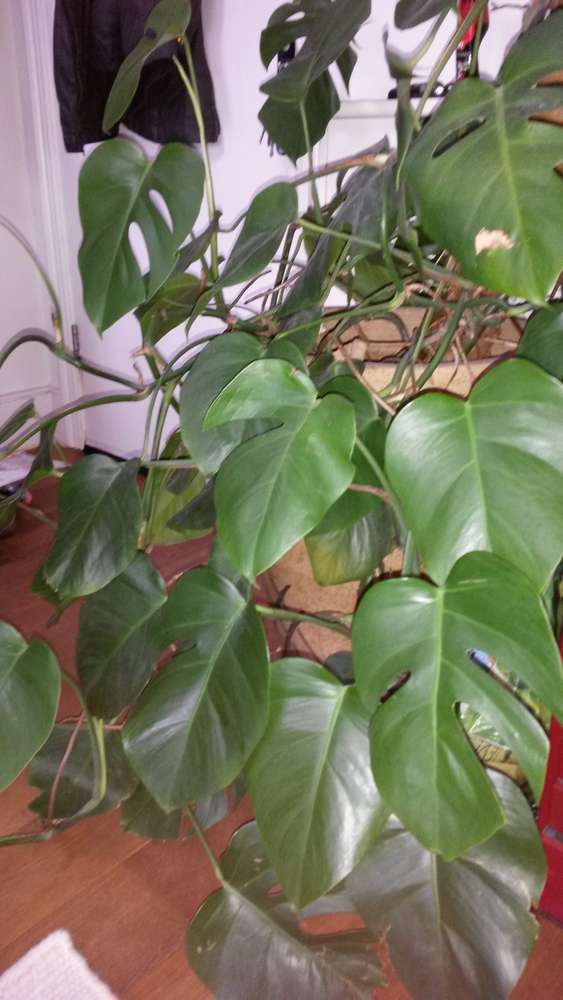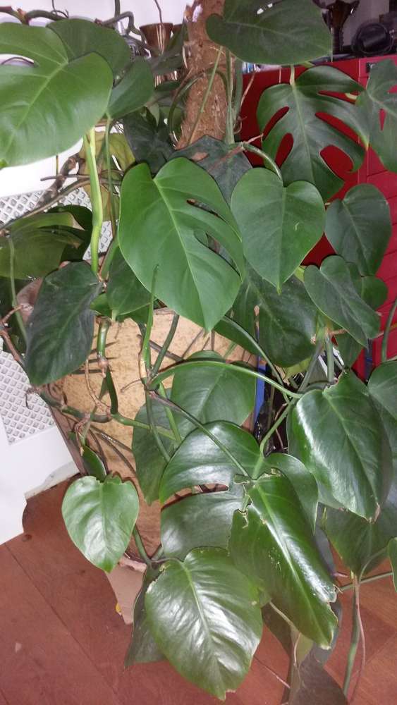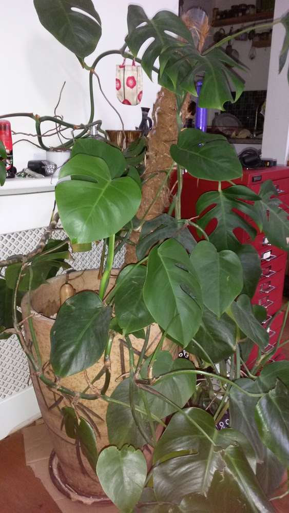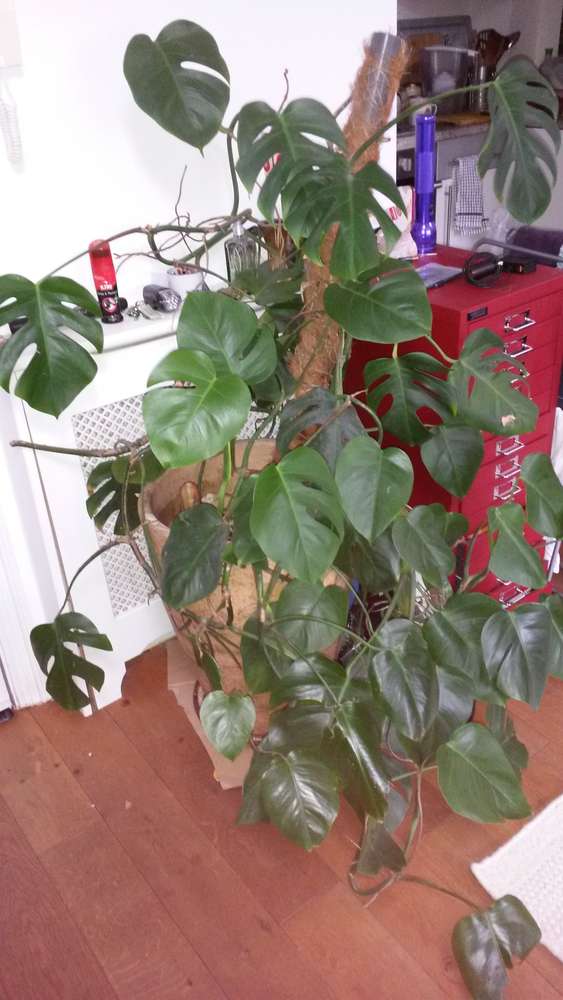 17 year old healthy thriving cheese plant (Monstera Deliciosa) with pot available to a good cause. Height of plant: 4'5" Height of pot: 56 cm It is a very heavy plant (together with the pot), and needs to be carried down approximately 2.5 flights of stairs.