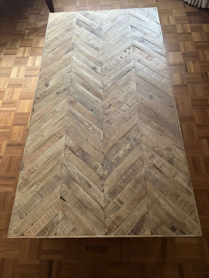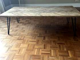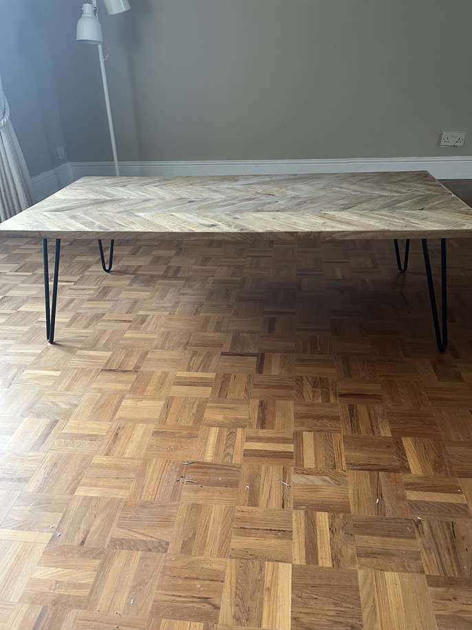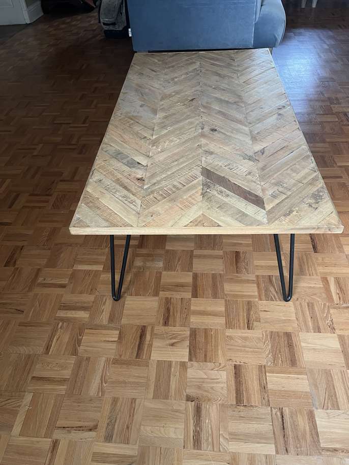 Large coffee table This item is in Beaconsfield GB All the details Mango wood with steel hairpin legs, herringbone pattern, in good condition Category Furniture Request This Item Ask a Question Post Message