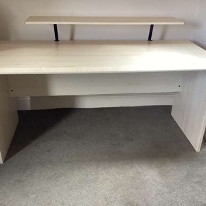 Large computer desk with optional shelf . 170cms wide by 74 deep x 72 high (82 with shelf) Very good condition. Not needed any more. Can be dismantled otherwise would need 2 people to get it downstairs
