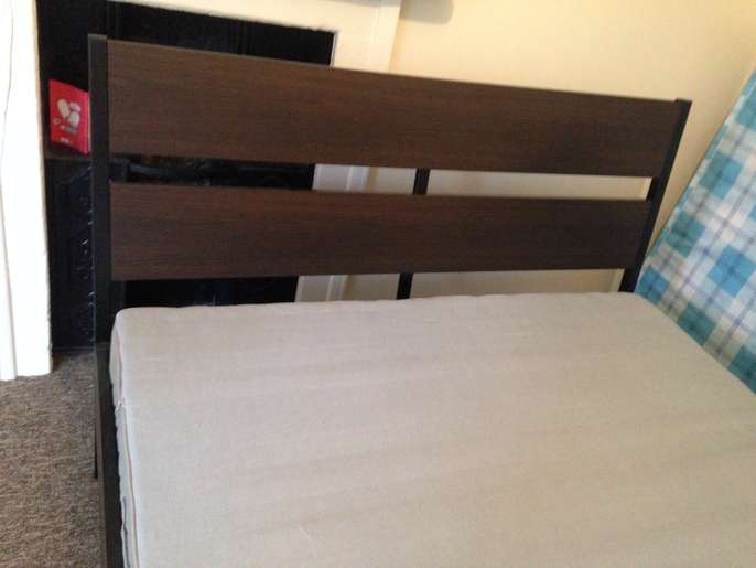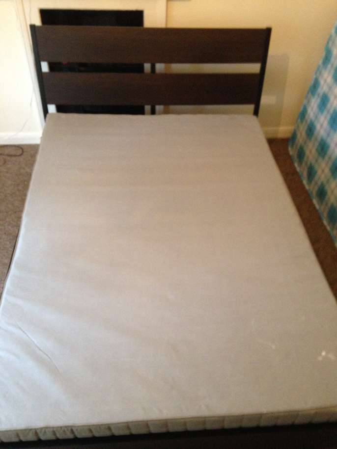 Large IKEA double bed. Used but good condition. Includes mattress- less that 2 years old. Collection only