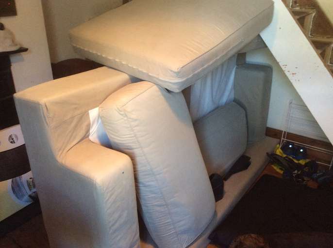 Large IKEA sofa. Sorry about the photo but all there. Cover can be removed and washed. I think it needs dyeing