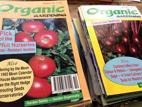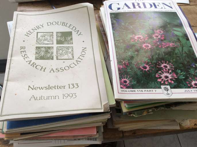 Collectable, Horticultural, Gardening: Large pile of old gardening mags, pamphlets, seed catalogues, plant catalogues, HRDRA ( Henry Doubleday) newsletters, organic gardening mags etc. 70s -90s. Frome.
