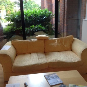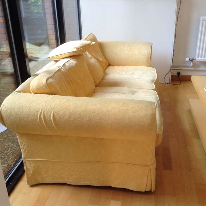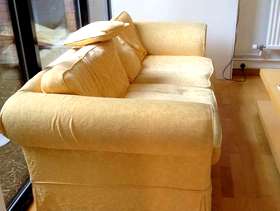 Removable covers. Machine washable . 6' 6 X 3' good condition. Covers in need of a wash. will need to be collected by Friday 23rd There are 2 sofas. One is Yellow gold. Other red.