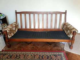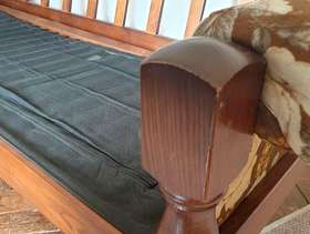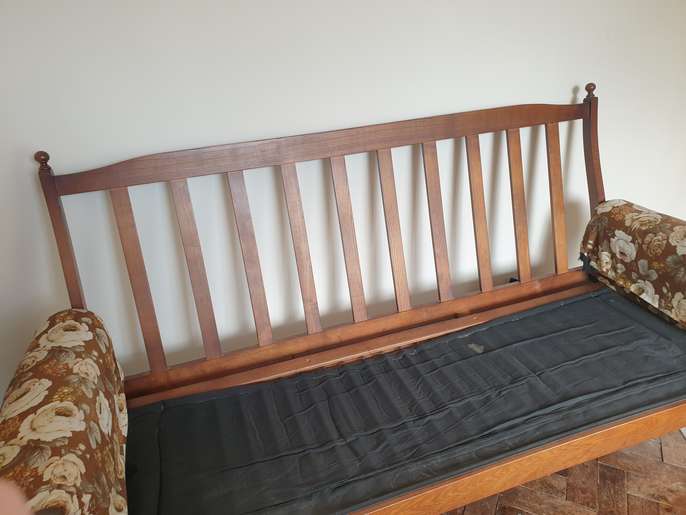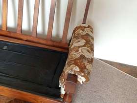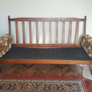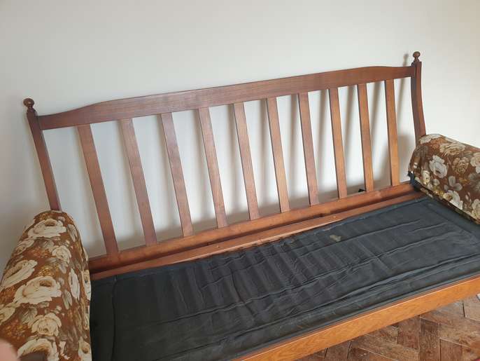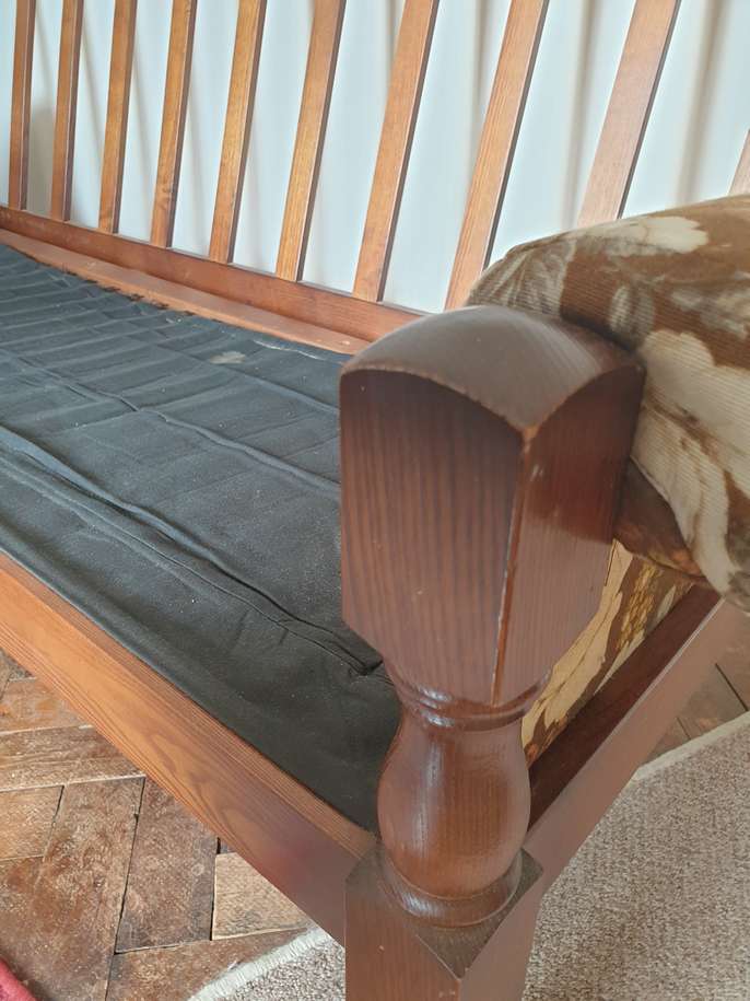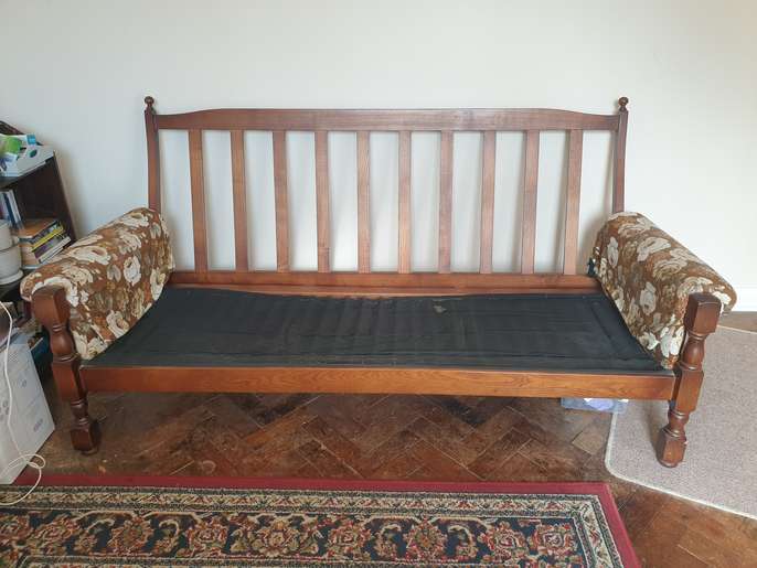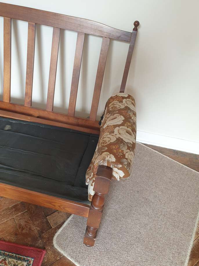Available for collection only, this could be perfect for an upcycler or upholsterer who wants a good project to work on and sell. Made of solid wood (possibly oak but not sure), back cushions and springs are intact but need replacement. Bottom cushions long gone, but piece is being used with large section of foam padding from local retailers.