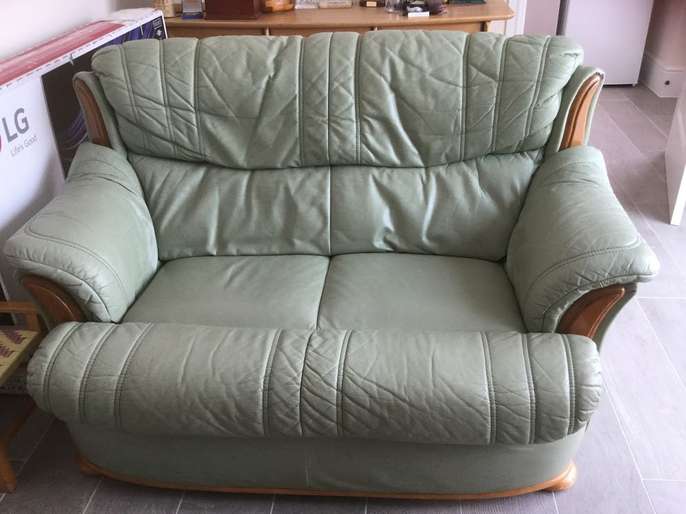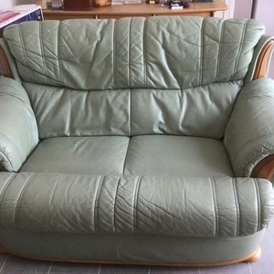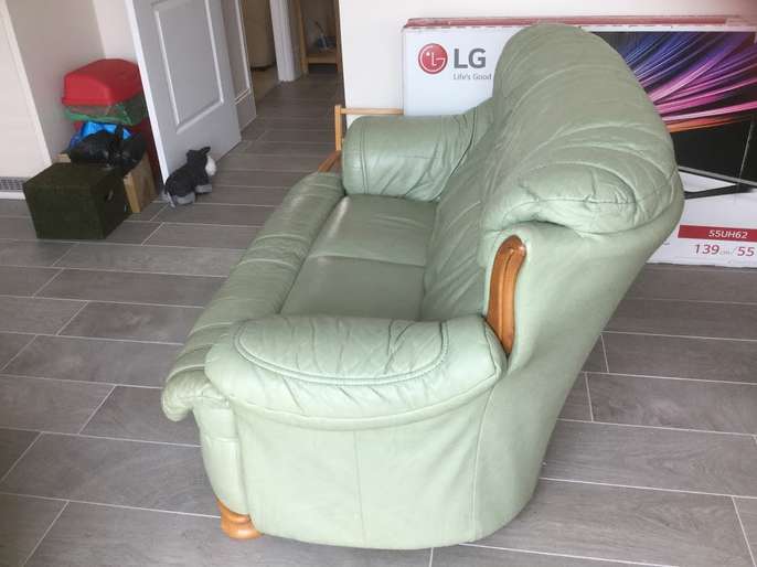Excellent condition. Light green leather . Very comfortable furniture Originally purchased from ALJ. Buyer will probably need van to collect.