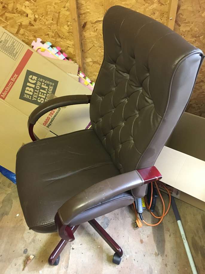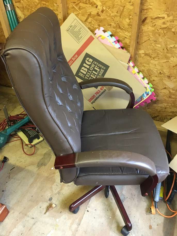 Leather effect office chair on casters to give away. Has been used a bit so not in perfect condition but chair is comfy and completely stable/suitable for long term use. Unsure how you would dissemble so probably needs collecting in a reasonably big car or van! Will offer to first person who can collect.