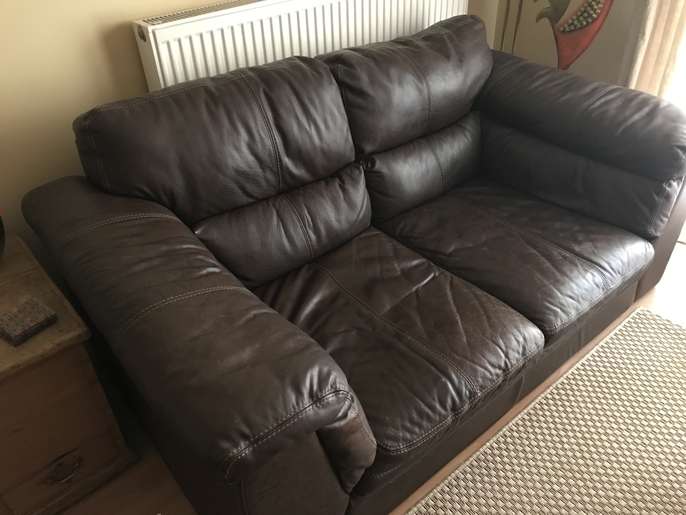 A three seat brown leather sofa (7 x 4 ft) and a two seat brown leather sofa (5.6 x 4 ft). Both in reasonable condition apart from some scratches on the two seat brown leather sofa. Would like this collecting before Saturday if possible. Please call me on 07726994251. If you would like more information or arrange to pick up.
