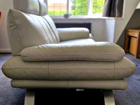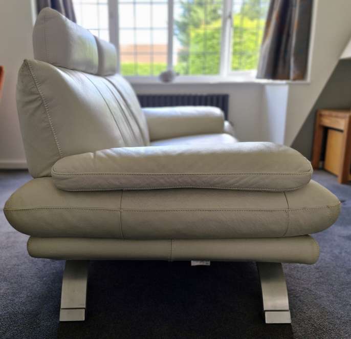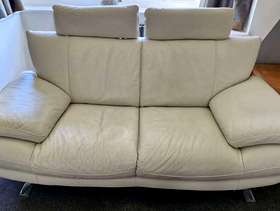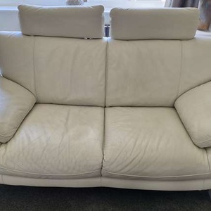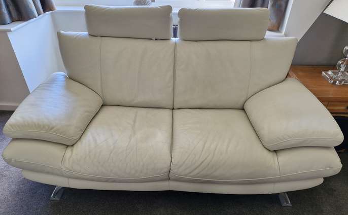 Ivory Leather 2 Seater Sofa Adjustable headrests There are a few small areas of damage Still plenty of life left Approx overall dimensions: 174cm long x 93cm deep See other item for 3 seater