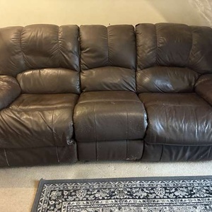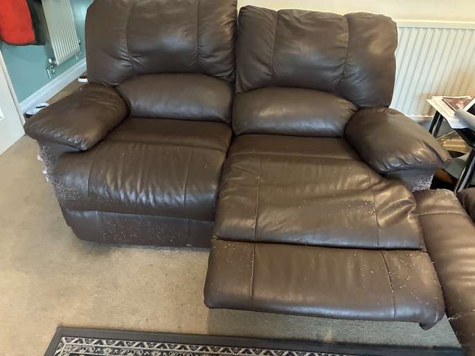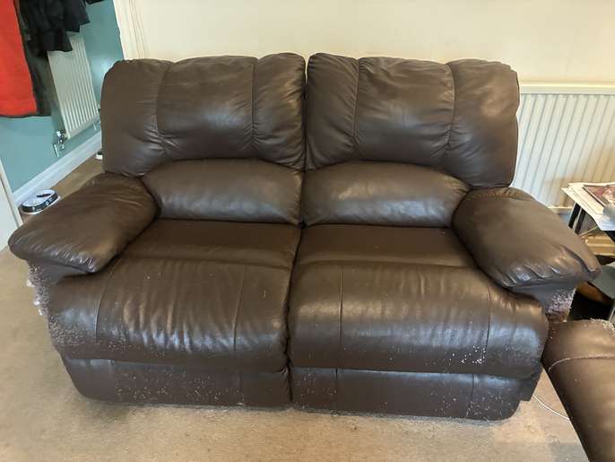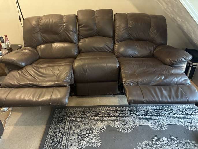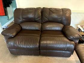 Two Reclining Leather Settees one three seater and one two seater A few cat scratches.