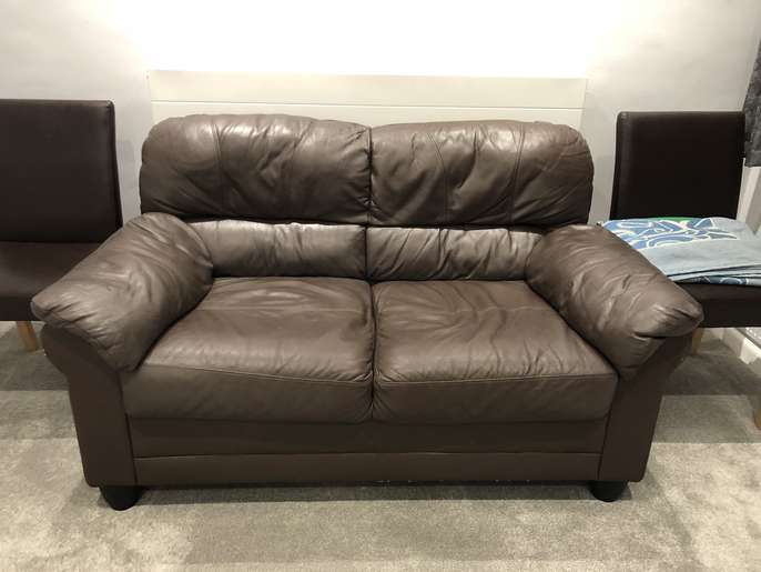 2 x 2 seater brown faux leather sofas. Pick up by Thursday 1st March 2018 as we have our new sofas arriving on Friday. These sofa have come from a good home and are in fantastic condition. Smoke free and pet free home.