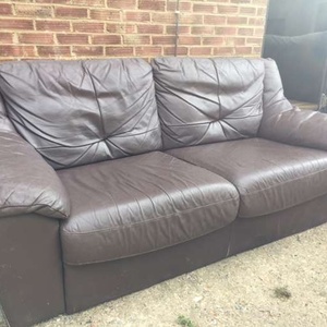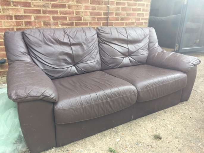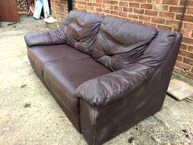 Old but perfectly comfortable free brown leather sofa. Had for 2 years. Only giving up because we bought a new sofa set. Collection only. Dimensions: Height 80cm x Length 184cm x Depth 90cm