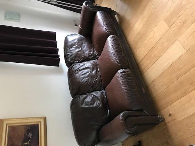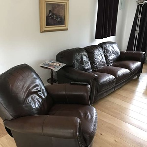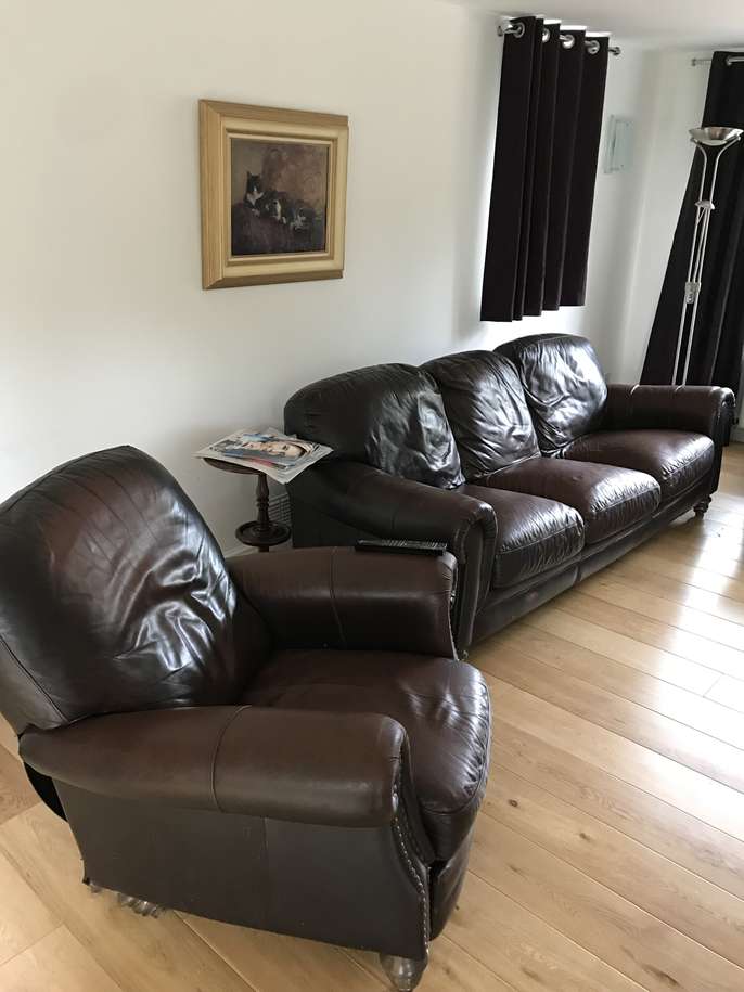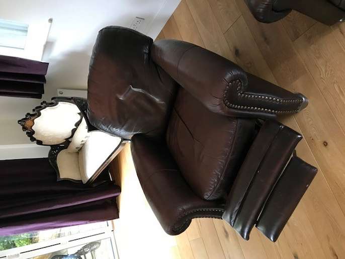 High Quality 3 Seat Leather Sofa and Single Recliner. In need of minor work to a leg on Sofa and Recliner otherwise in perfectcondition. For Collection only