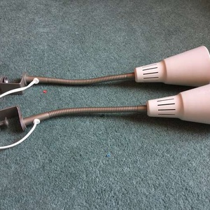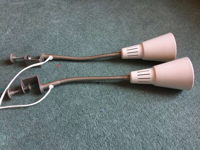 Can be fixed to anything via the clamp - flexible wire so can be bent and directed at anything. Both working. 2 to give away.
