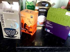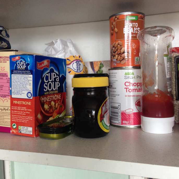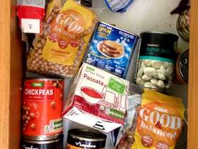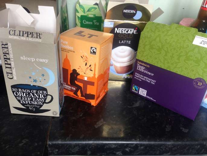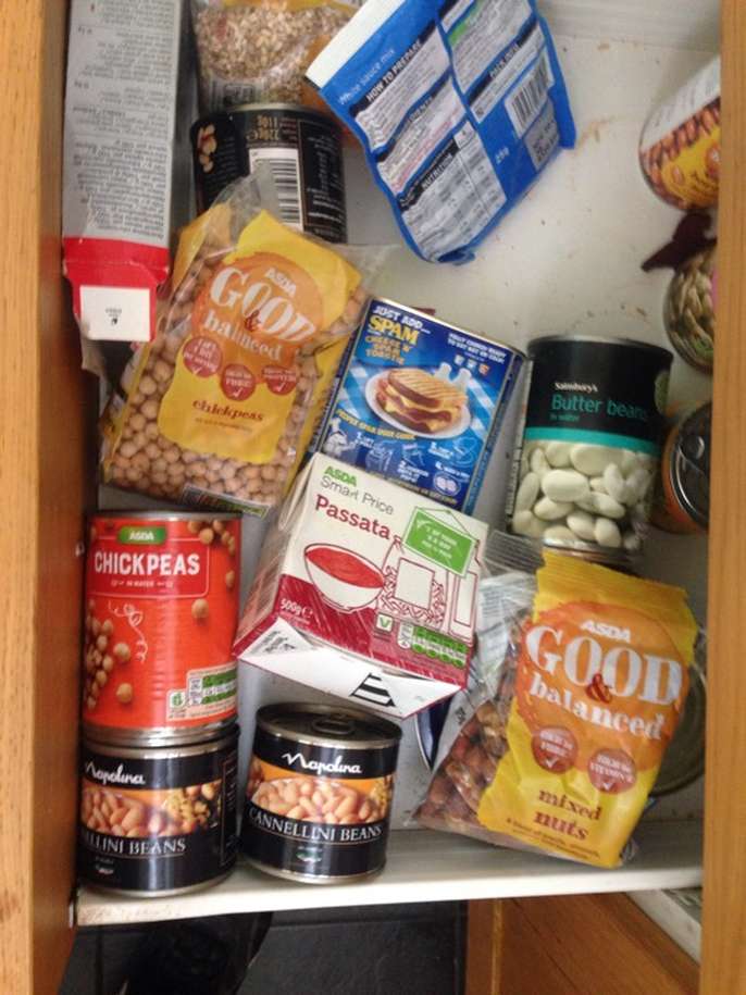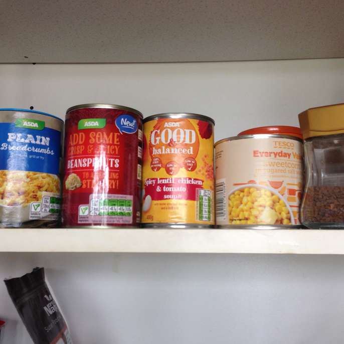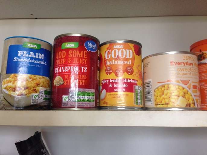 Loads of tinned food, pulses, teas, coffees