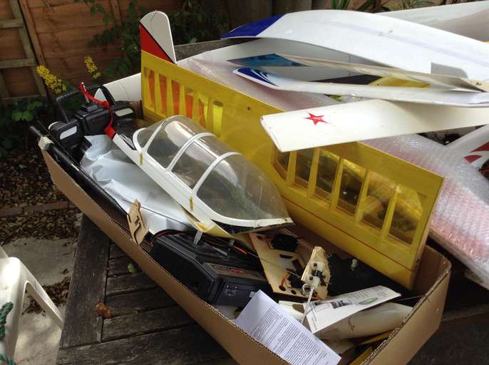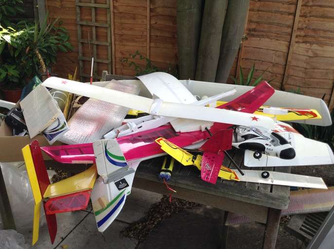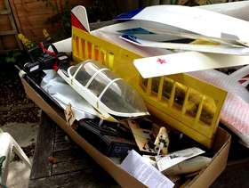 My son used to fly these planes, they have been in a garage for long time and I wonder if somebody can do something with them before they go to the dump. If you are interested you will have to take the whole lot please. Thanks