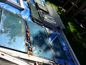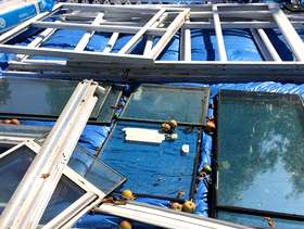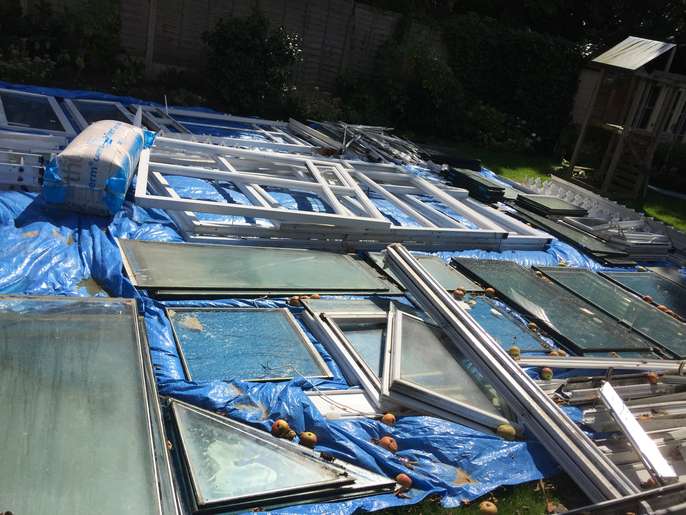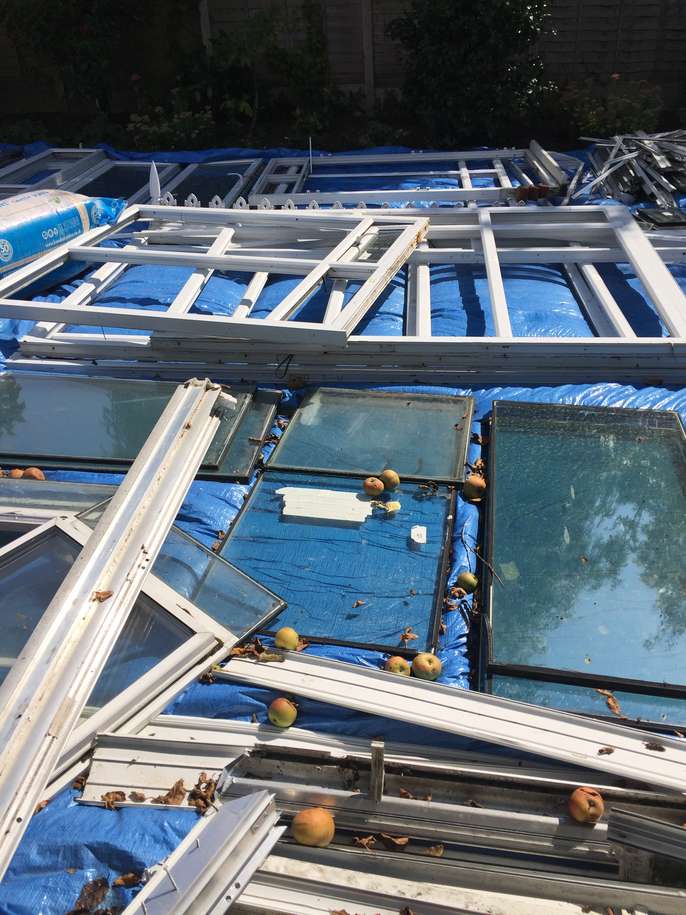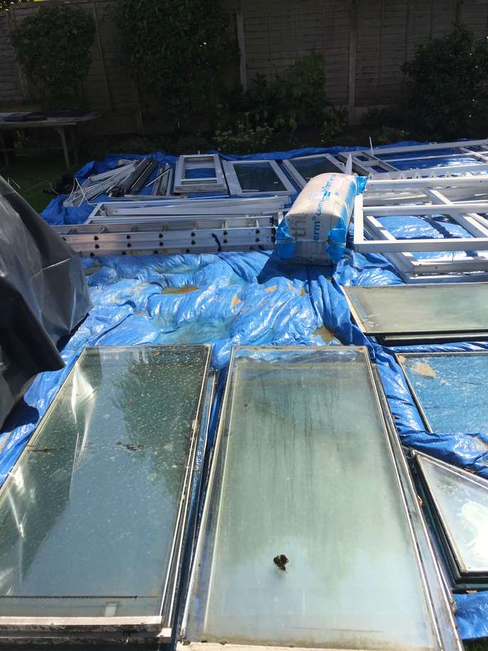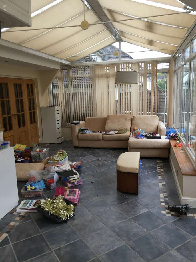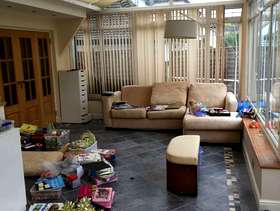 Old DFS L shaped sofa bed with fire safe label on. May be a bit damp as it is currently in the garden waiting to be taken away.