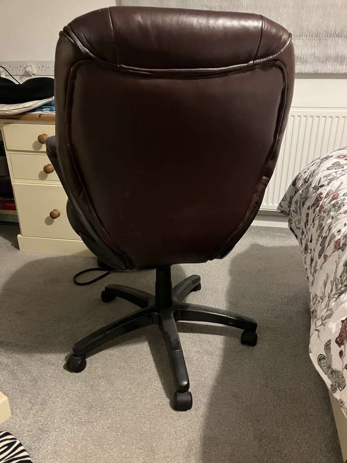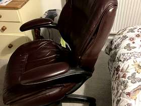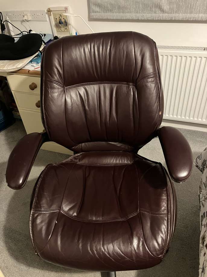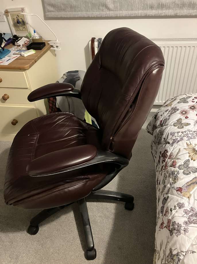 Lovely comfy luxury office executive chair. A little wear and tear. But in good working order. Free to that home who wants an extra touch of upperclass furniture.