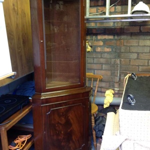 Mahogany corner display cabinet with shelves. Well polished and cared for.