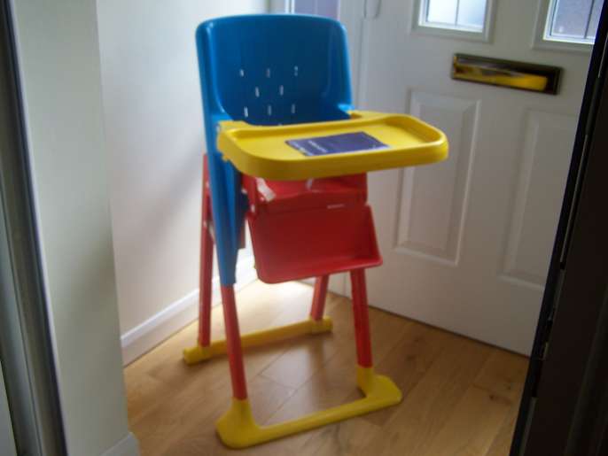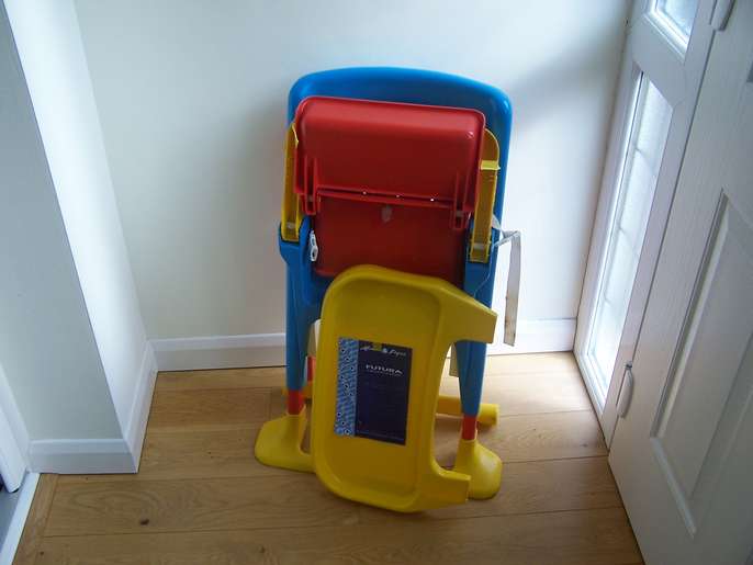 Mamas and Papas Futura high chair in very good condition. Adjustable height and detachable tray. Collapses for easy storage and easy clean !!