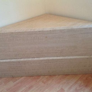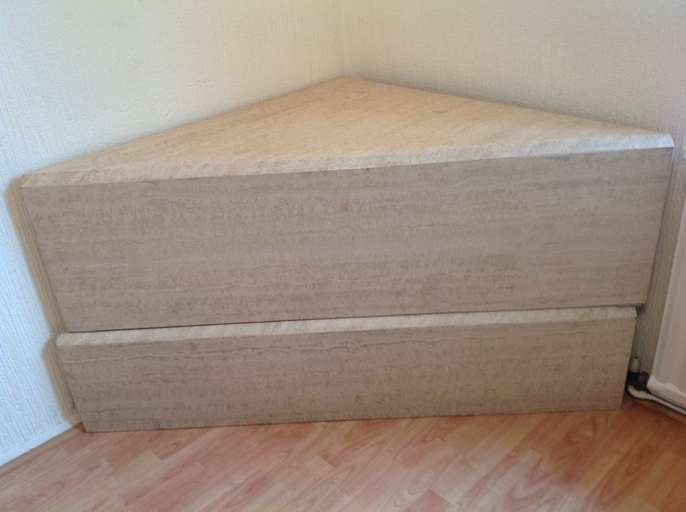 Two attractive triangular marble units that can be used individually or stacked. Dimensions are: 35cm high x 137cm wide x 97cm sides 42cm high x 137cm wide x 97cm sides Will need collection by van or large car as very heavy. To be collected this week if possible due to moving home. May also suitable for home use or shop fitting.