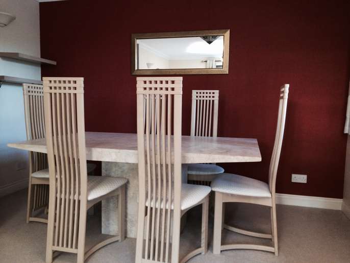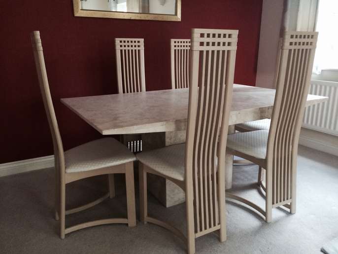 Beautiful marble composite table and 6 high back chairs. Cost £1,450 from Furniture Village in Guildford. Offers accepted
