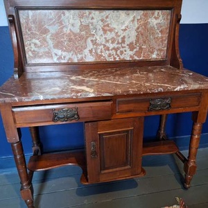 Victorian marbletop washstand needs a new home. Good condition just needs minor repair to door latch and base loose just needs nailing down