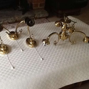 Brass ceiling lights with matching wall lights the latter each fitted with on/off pull switch