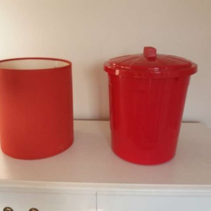 Bright red lampshade with matching waste bin with a lid. Very good condition.