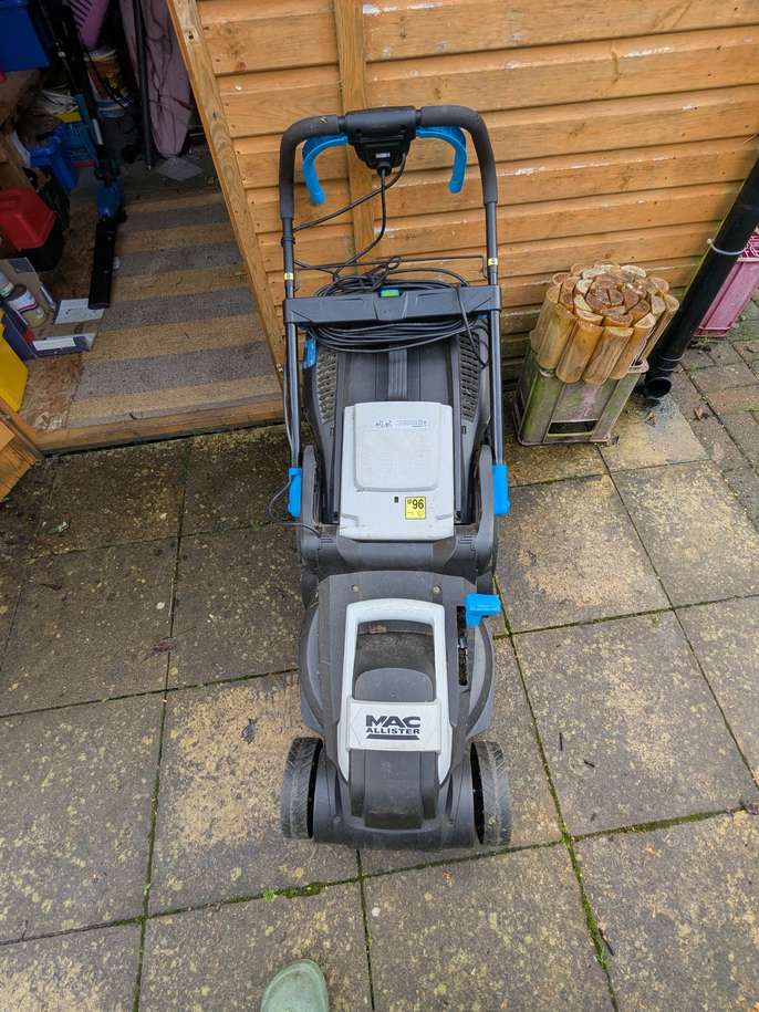 McAlister 340cm cut mains powered rotary mower, in full working order. I have purchased an cordless mower so this one is no longer needed.