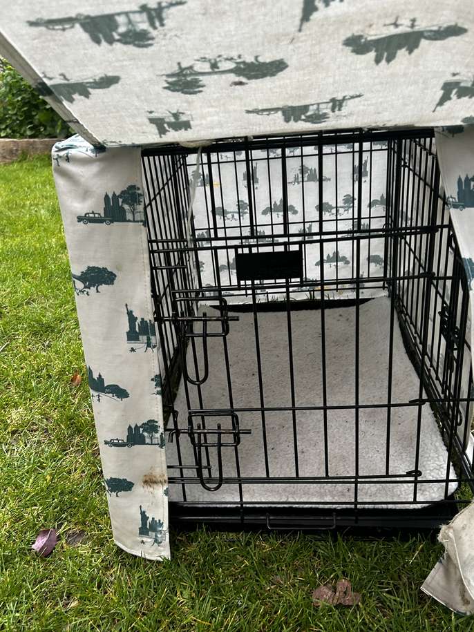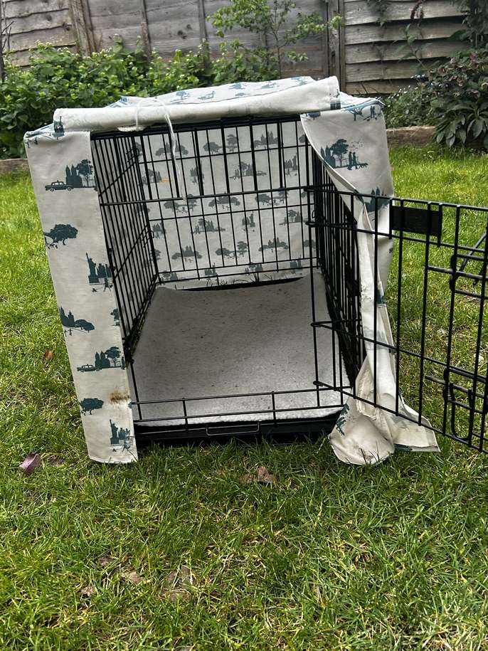 Free dog cage and cover for a medium size dog, used for approx 6 months during training, must go quickly. Collection SE12