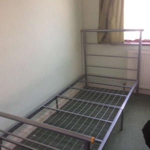 This is a metal framed bed which will need assembling with a hardly used fire retardent mattress - single