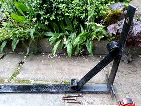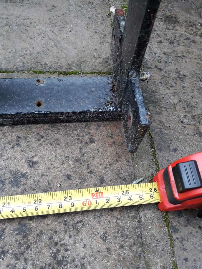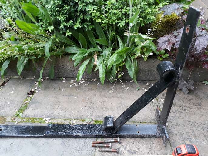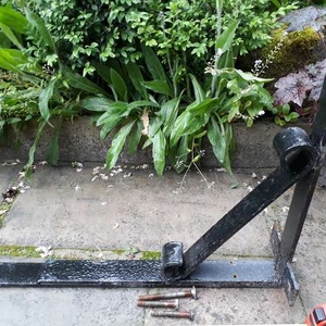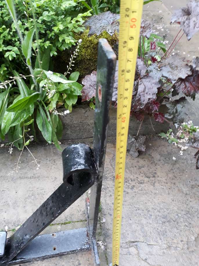 Large metal bracket. Was previously attached to a wall and held a hanging basket but please note it is very large and probably only suitable for a huge basket! Dimensions: 65cm x 47cm (approx).