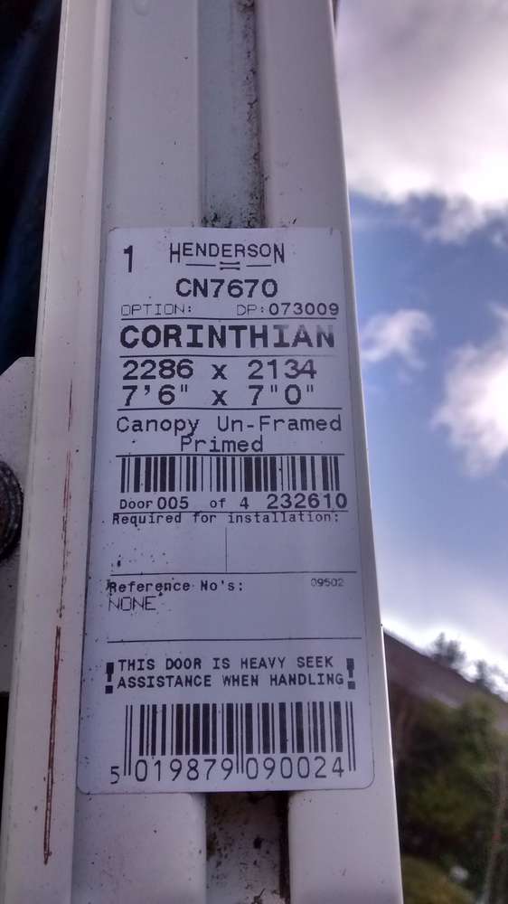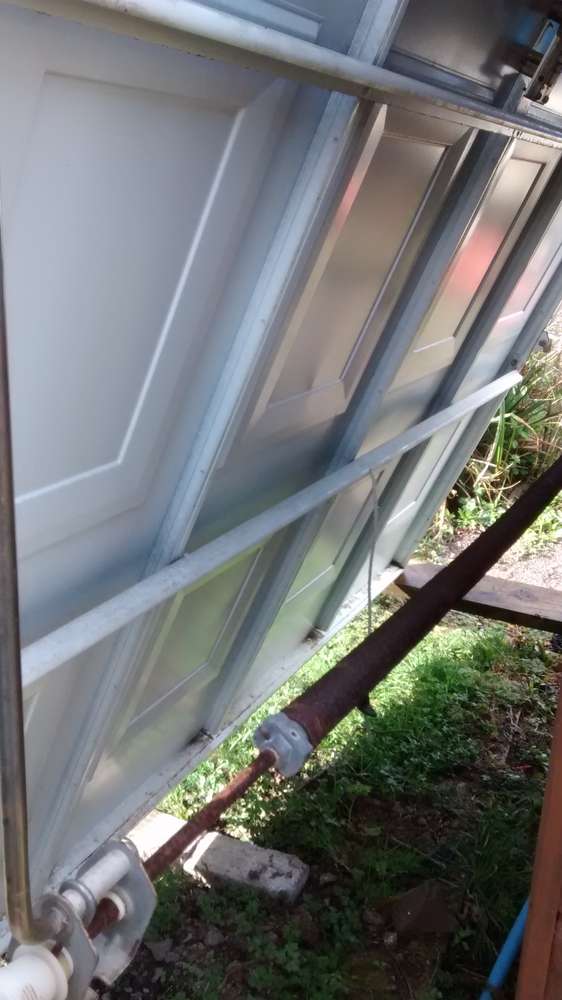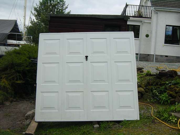 Metal Garage Door: Up and over. Make: Henderson CN7670 Corianthia. Size: 2.286m (W) by 2.134m (H) 7'6" (W) by 7'0" (H). Location: Kippford, DG5 4LL Used, in reasonable condition