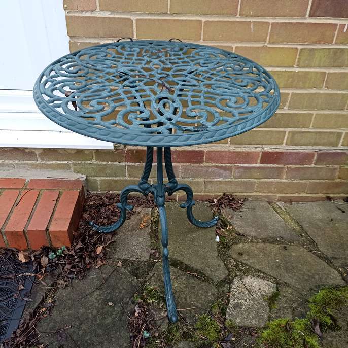 Metal Round Patio table. This item is in Earlswood GB All the details Free to collect from Redhill, RH1 4AQ. Category Home & Garden Request This Item Ask a Question Post Message