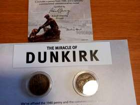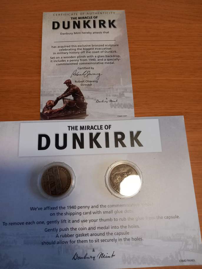 Danbury Mint bronzed sculpture set on a wooden plinth. Comes with 1940 penny and commemorative medal, with a certificate of authenticity. Collection only.