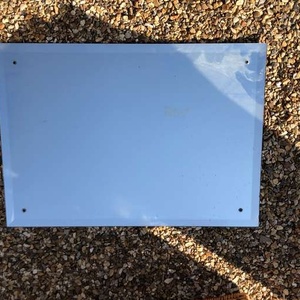 Rectangular glass mirror 56 x 40cm Minor tape on front, easily washed off Pre-drilled holes in corners