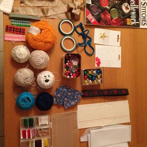 Large bag of ribbons, threads, beads and sewing magazines. (More than in photo)