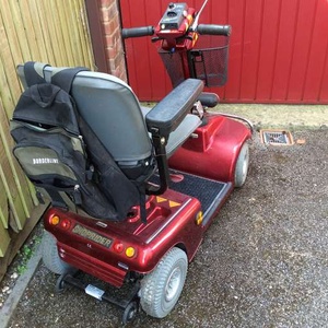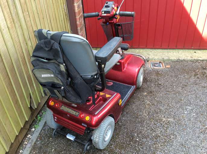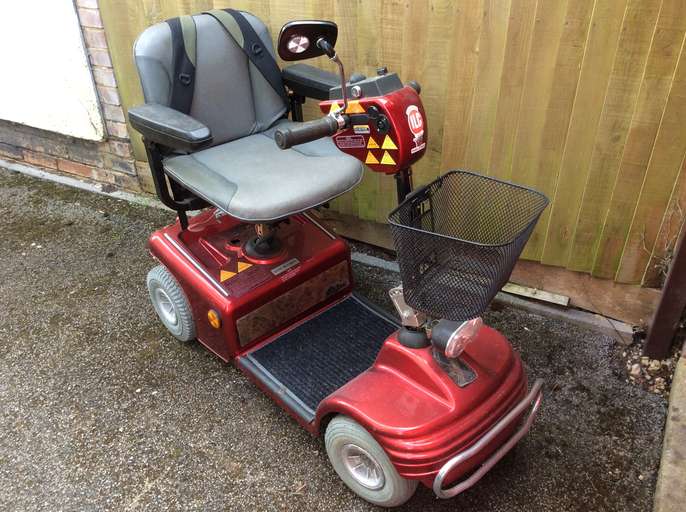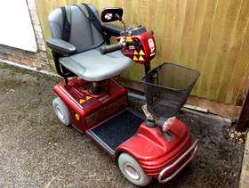 4-wheel 'Shoprider' mobility scooter; has been stored in a dry garage for a couple of years, now needs new battery and some TLC. Free to anyone willing to collect!