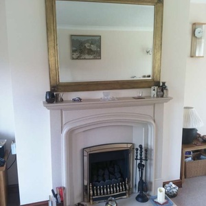 Little used modern coal effect gas fire with full fireplace surround, dismantled ready for collection. See picture.