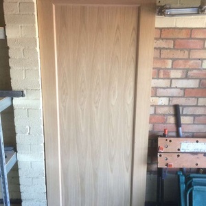 This is a new light oak door, never hung but with three recesses cut In preparation for hinges to be fitted. It is partly solid oak and partly oak veneer. Dimensions are: 78” high; 33” wide; 1.5” thick.