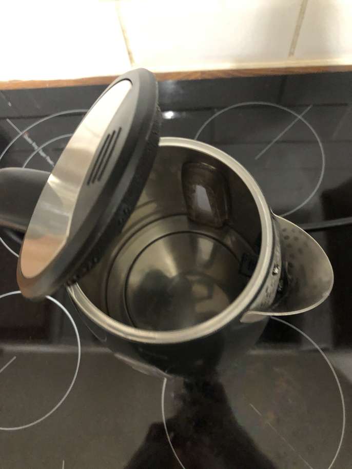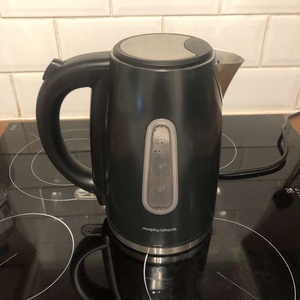 Morphy Richards electric kettle Model Number:102775 Volume - 1.7L Color - Black Outside material - Plastic Inside material - Stainless steel Boils water quickly. 1.7-litre capacity – enough for up to six cups at a time. Limescale filter with is removable and washable. 360° base – easy to use for both left- and right-handed users. Practical cord storage in base. See the pictures - no limescale inside, the kettle is clean and fully operational