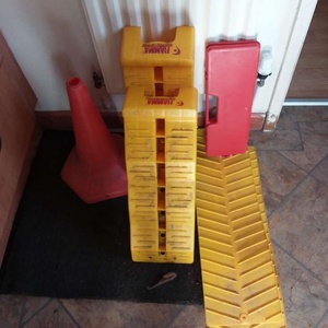 One pitch marking cone, pair of leveling ramps, pair of skid strips
